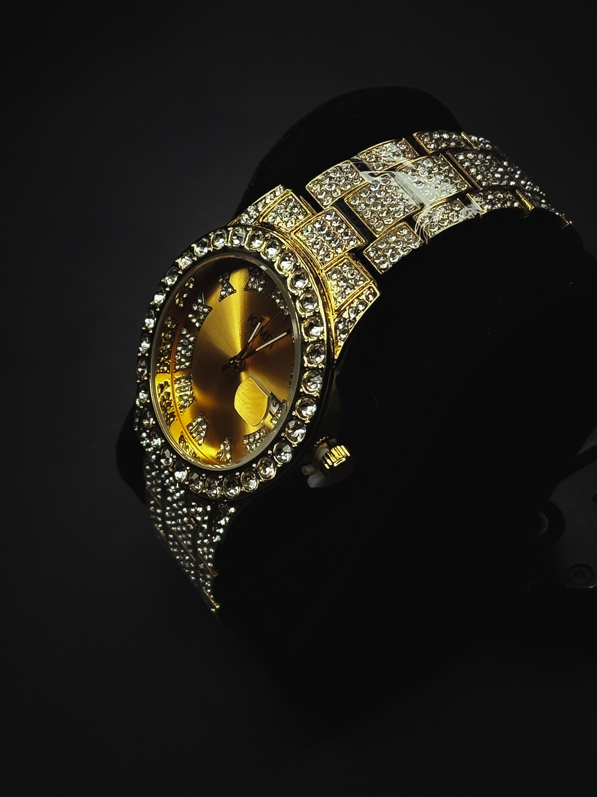 Unleash luxury on your wrist with the Iced Royal Watch β a timepiece designed to make a bold statement. With its fully iced-out finish and gold-tone shine, this watch blends royalty with street style. Whether you're dressing up or keeping it casual, the Iced Royal adds instant drip to any outfit.
