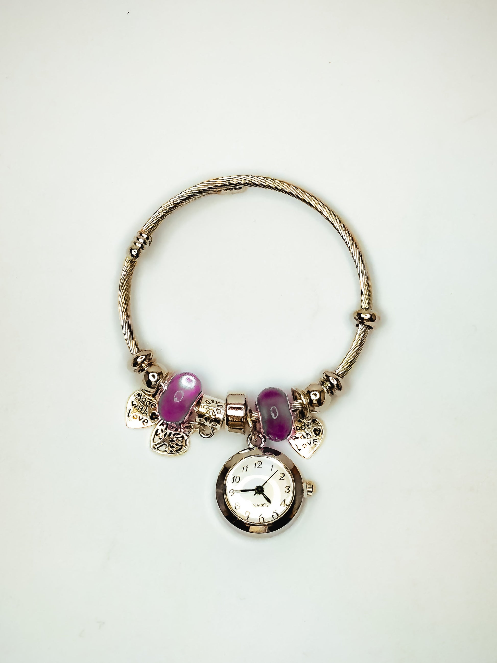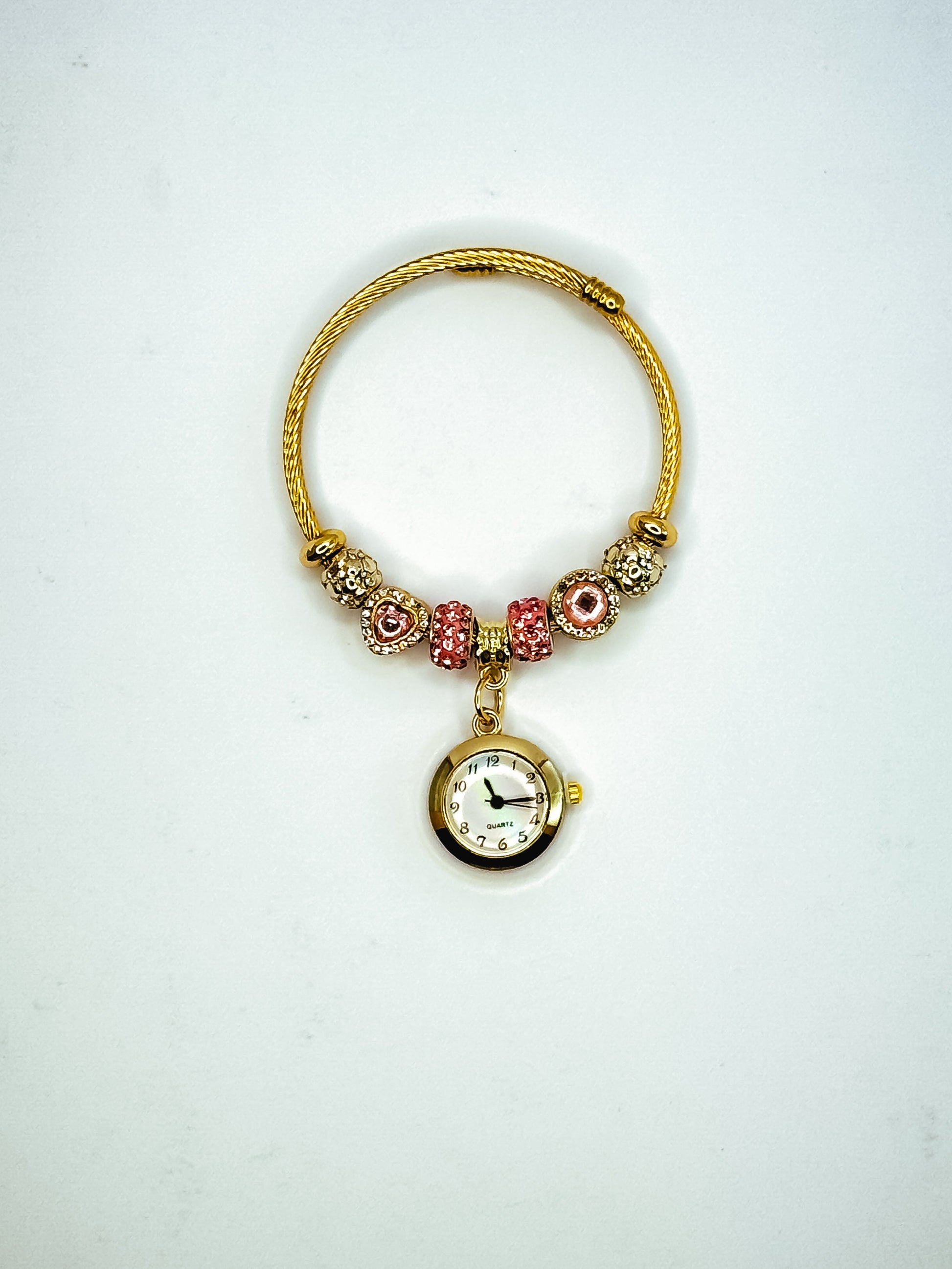 Step into the spotlight with the Blush Queen Bangle Watch — a graceful blend of royal vibes and modern femininity. Designed for queens who love to shine, this timepiece features a sleek dial paired with a chic charm-style bangle bracelet that adds the perfect touch of glam to your wrist.