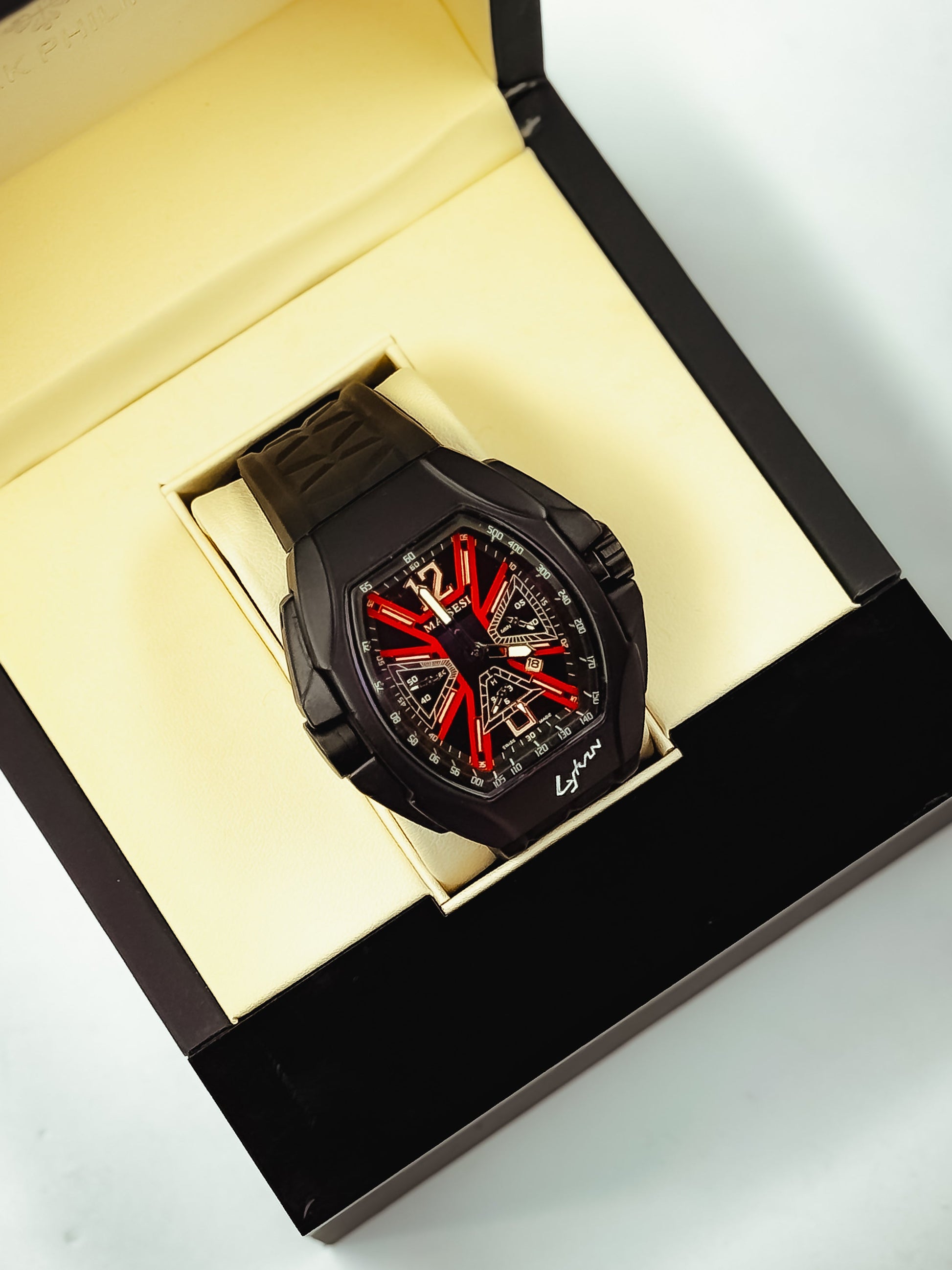 Upgrade your wrist game with the Majestic Prime Watch β a perfect fusion of aggressive style and premium detailing. With its sharp edges, multi-dimensional dial, and vibrant red-black color scheme, this watch doesn't just tell time β it makes a statement.