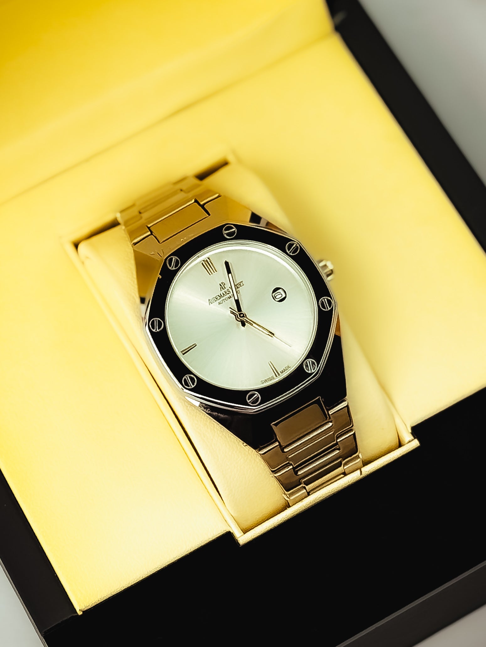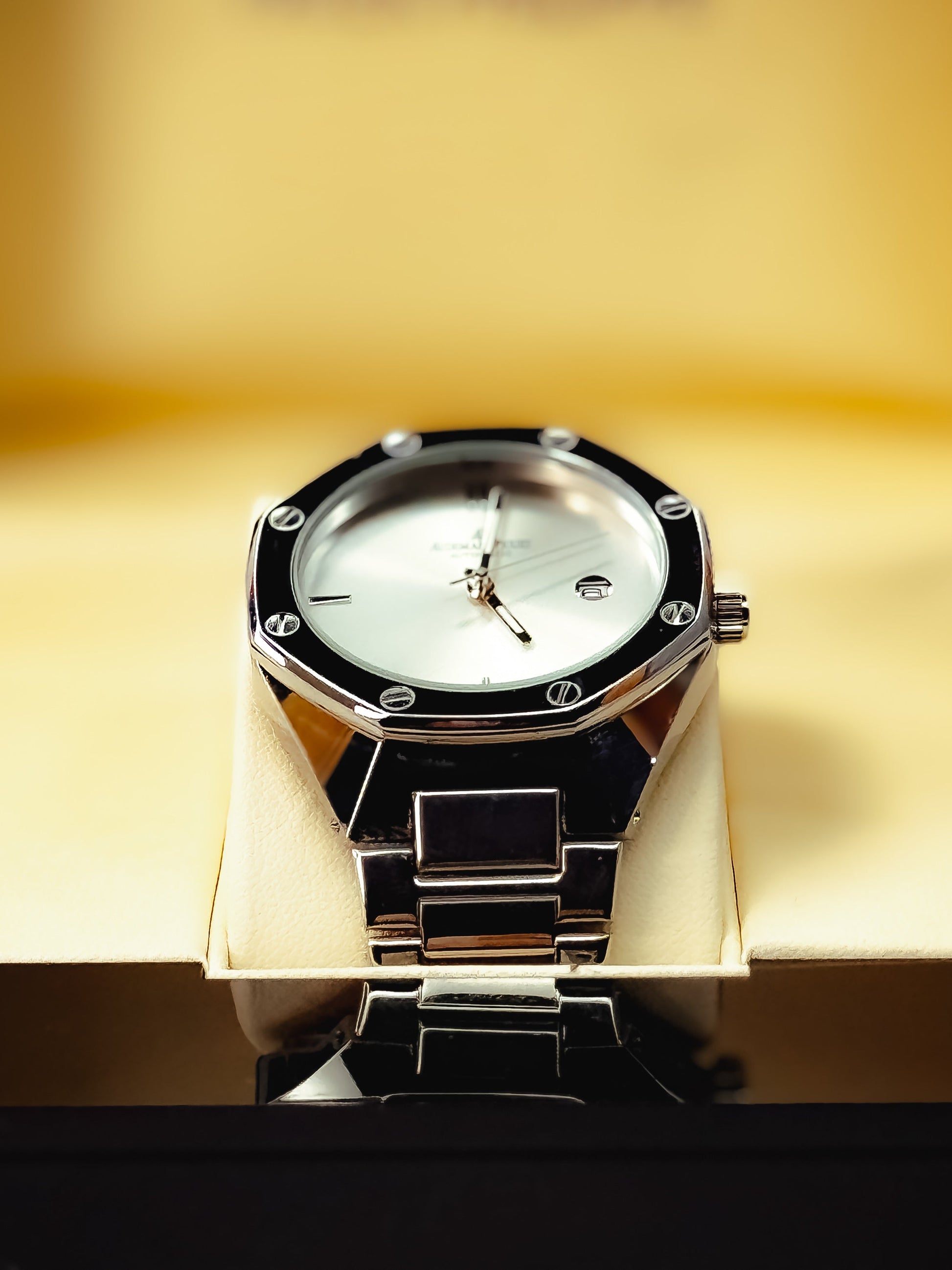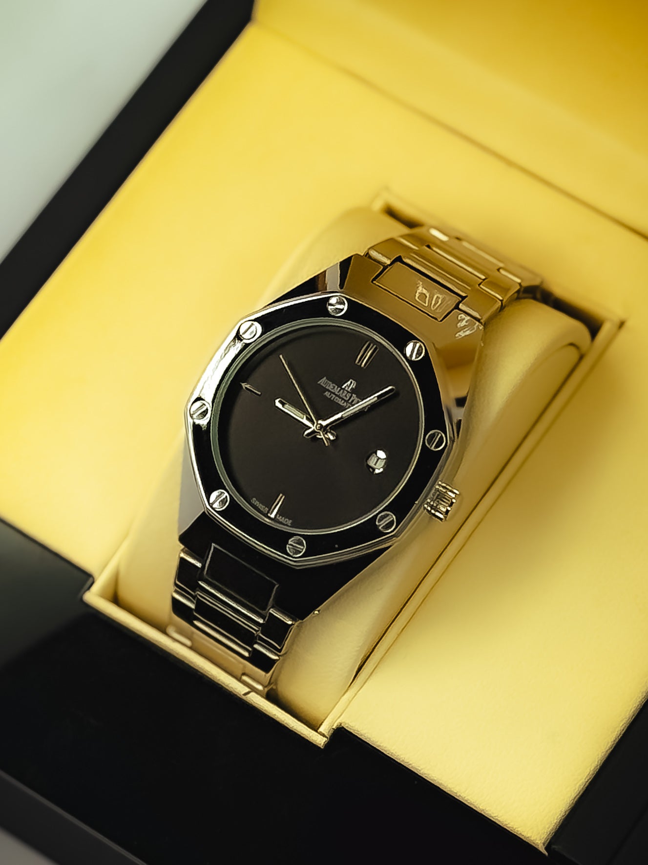 Introducing the AP Blaze Watch, where timeless craftsmanship meets modern fire. Designed for those who command attention, this premium timepiece features a sleek silver finish, bold bezel screws, and a luminous dial that blazes with confidence day or night.