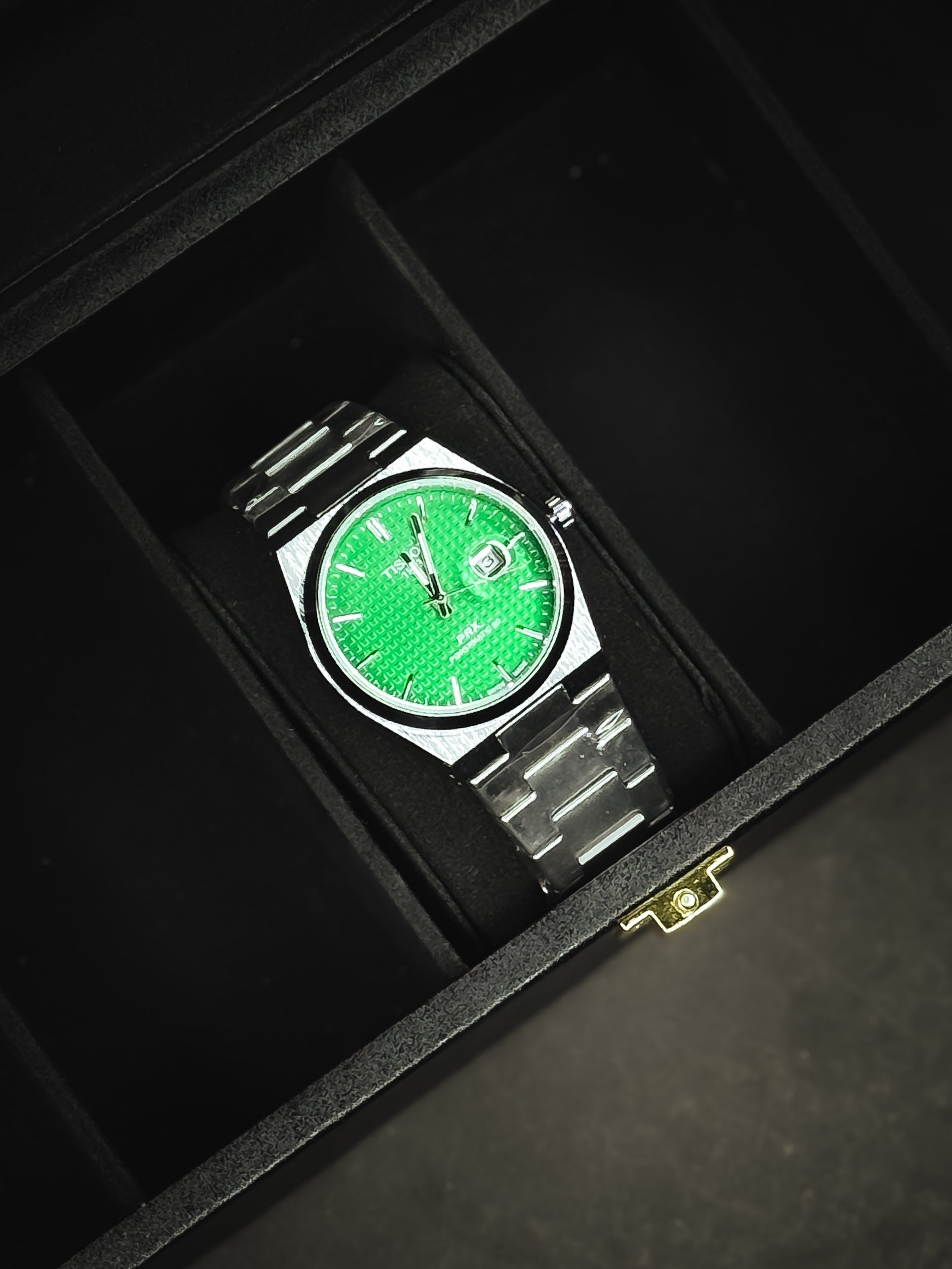 Precision Craftsmanship: Powered by advanced Swiss quartz movement, it ensures that your time is always perfectly synchronized, with a clean, sharp look that never goes unnoticed.