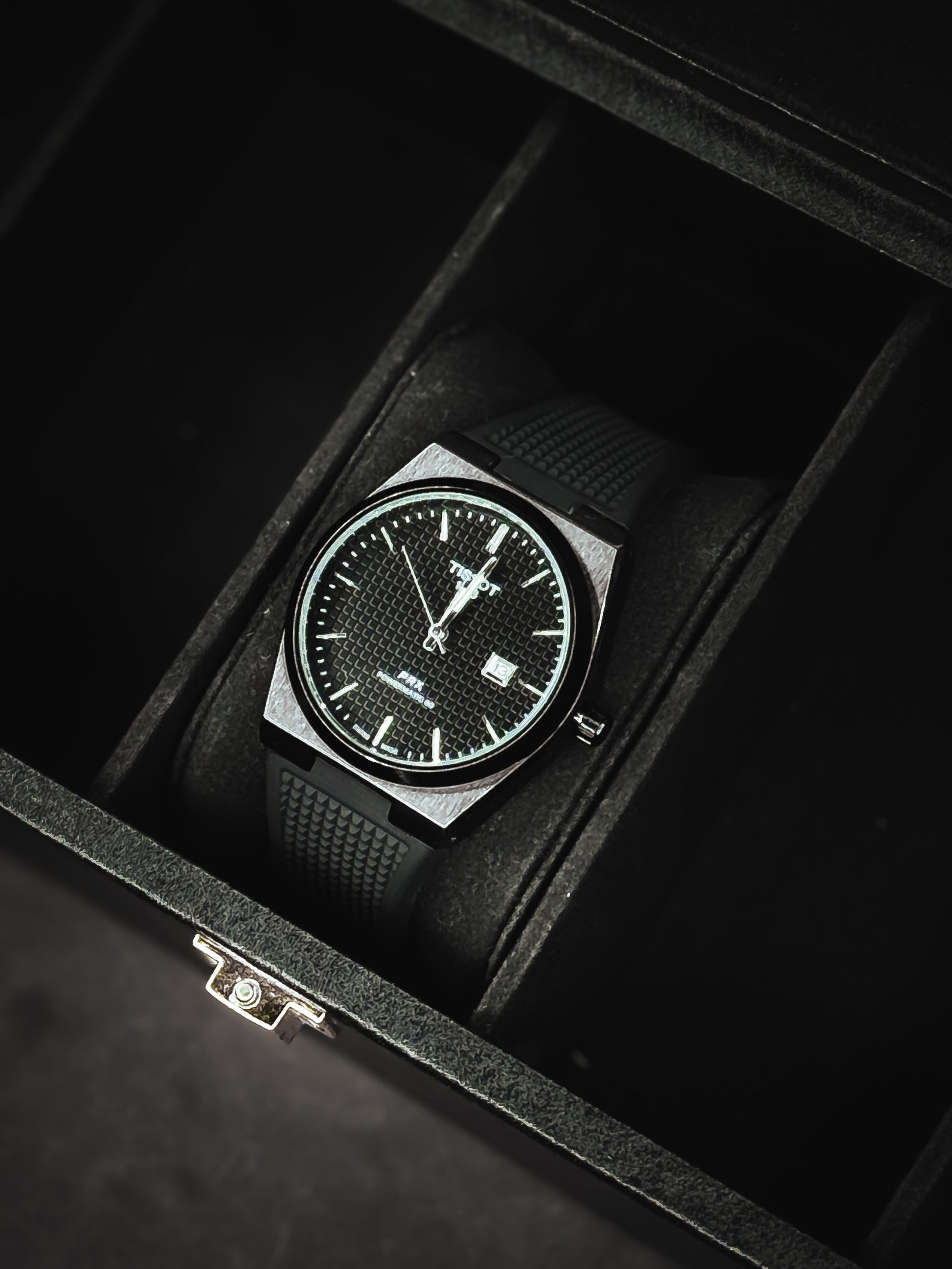 Introducing the Phantom Blaze, a timepiece forged from the depths of elegance and boldness. With a design that commands attention, this watch is more than just a tool for timekeeping—it's a symbol of power, precision, and untamed style. Inspired by the intensity of fire and the mystery of shadows, the Phantom Blaze brings the perfect balance of strength and sophistication to your wrist.