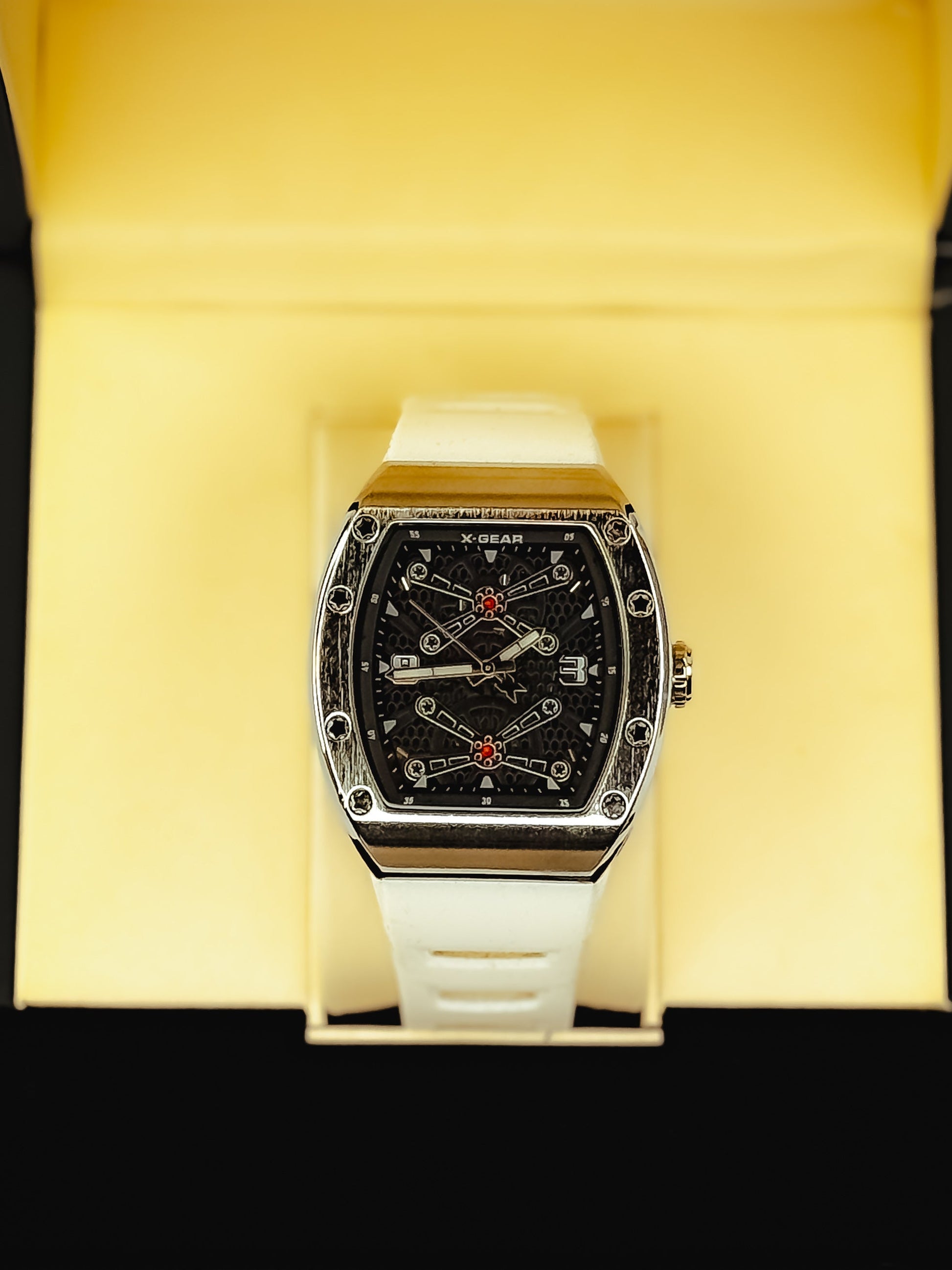 π₯ Featuring a bold skeleton dial, precision detailing, and signature white celecon PVS straps β built to stand out in every scene.