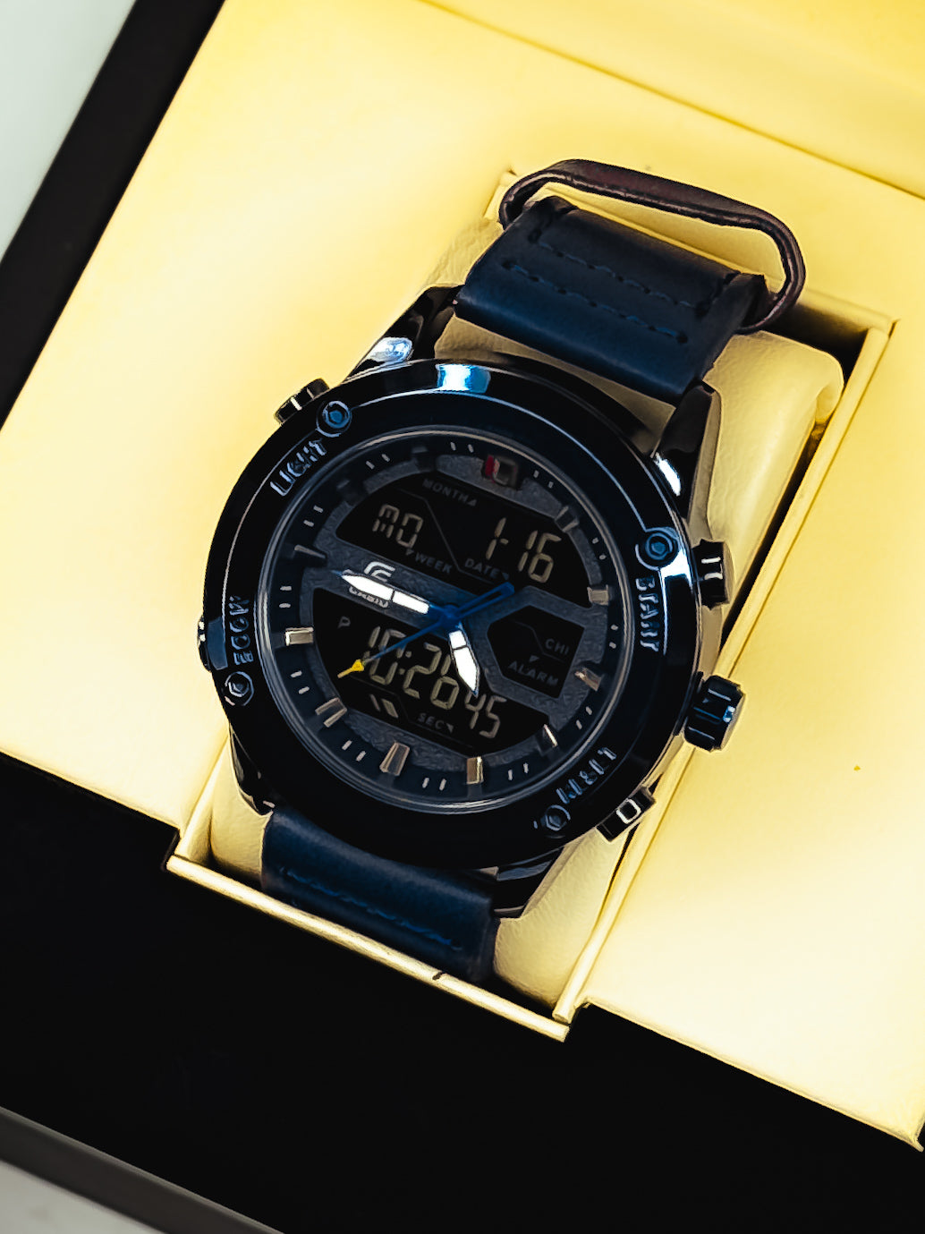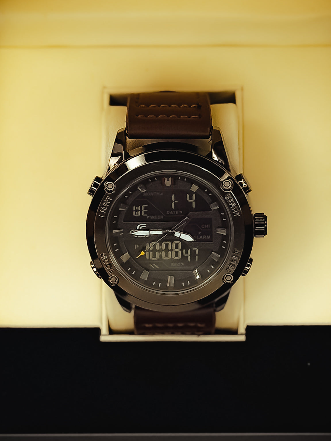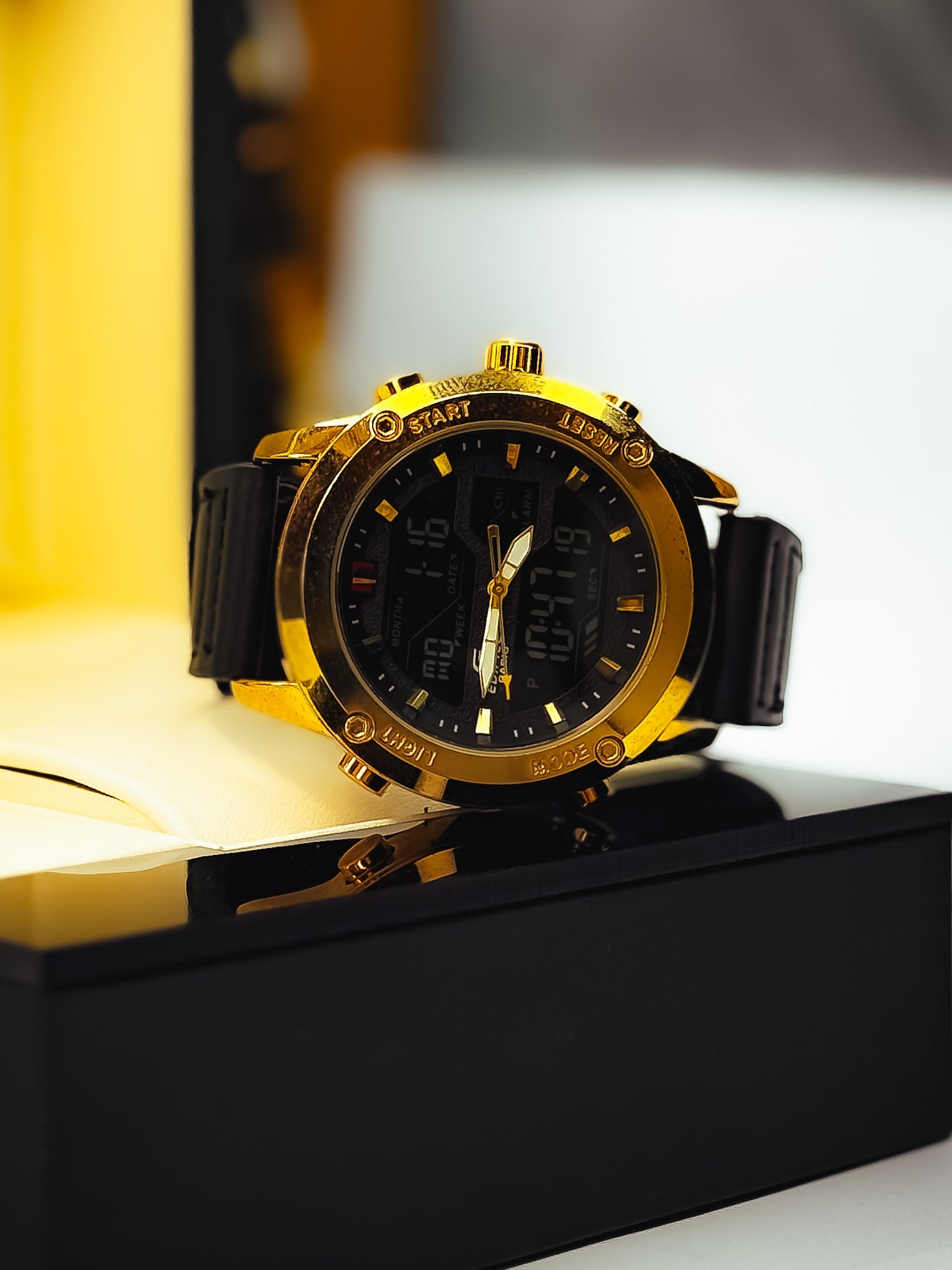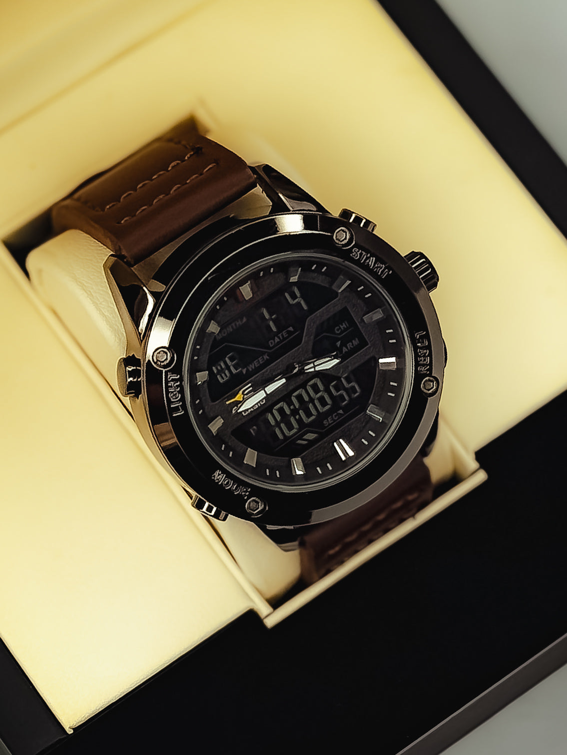 Not just a watch β this is your daily mission gear. Introducing the StormCore Dual-Strike Watch, the ultimate fusion of classic analog style and digital functionality. With its rugged design, bold display, and fully working features, itβs engineered for those who live in motion β whether you're lifting at the gym, riding through city streets, or chasing goals from dawn to midnight.